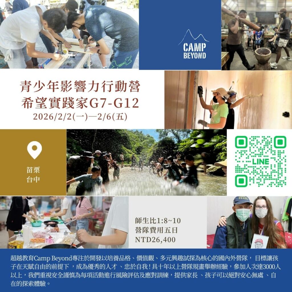 2026 Winter Camp【Idea to Impact |雙語 G7-G12 青少年影響力行動營 | 品格教育╳走讀╳公益服務 | 希望實踐家】