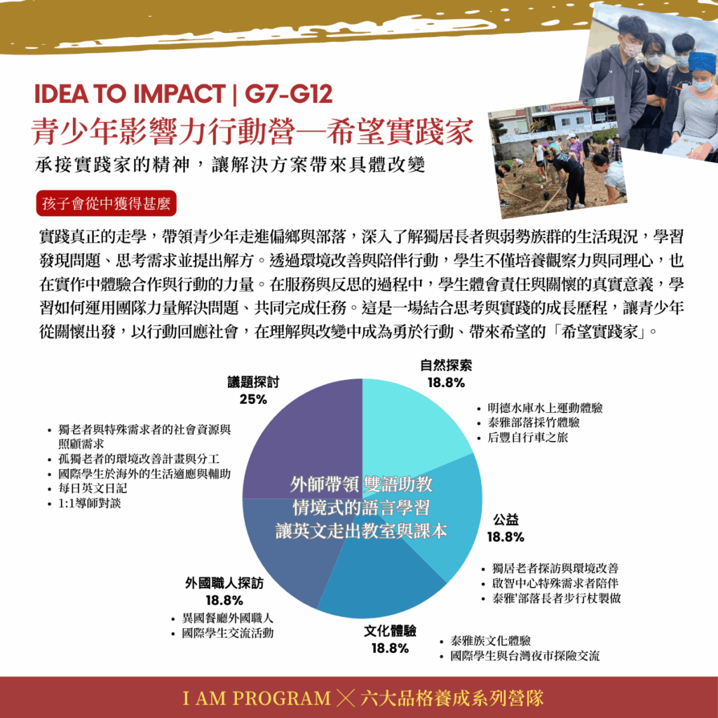 雙語G7-G12 青少年影響力行動營 | 品格教育╳走讀╳公益服務 | 希望實踐家