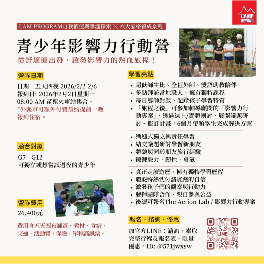 2026 Winter Camp【Idea to Impact |雙語 G7-G12 青少年影響力行動營 | 品格教育╳走讀╳公益服務 | 希望實踐家】